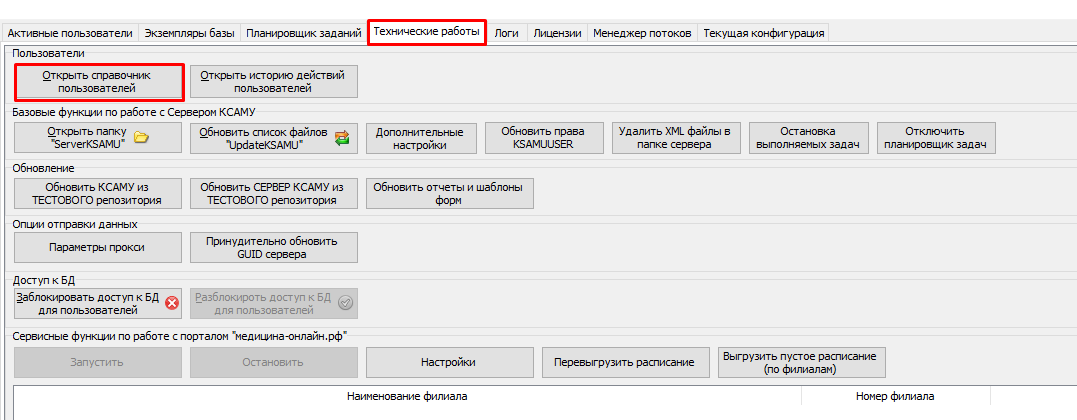 Для Этого необходимо перейти на вкладку Технические работы - Затем нажать кнопку "Открыть справочник пользователей" (Рисунок 1)