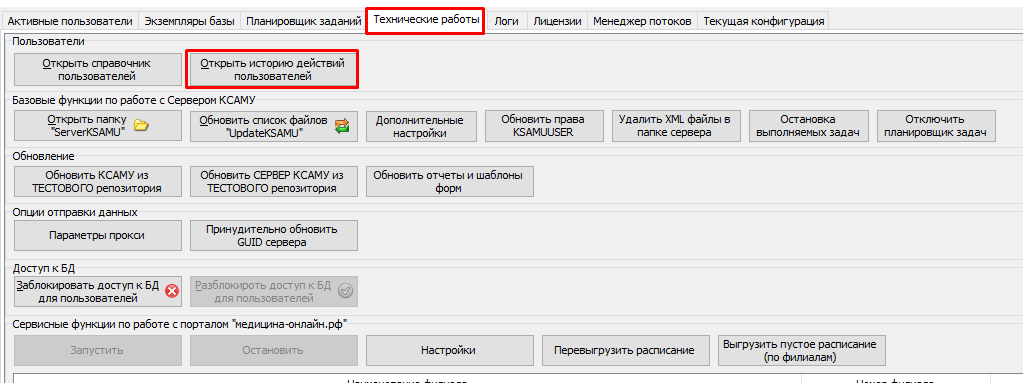 Так же на вкладке "Технические работы" Была добавлена кнопка "Открыть историю действий пользователей" при открытии которой будет выводится окно с логированием изменений которые были внесены пользователями. (Рисунки 4;5)