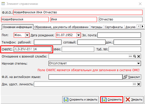 Если менять данные существующего врача, то во всех уже оформленных картах и документах данные врача поменяется автоматически на новые.