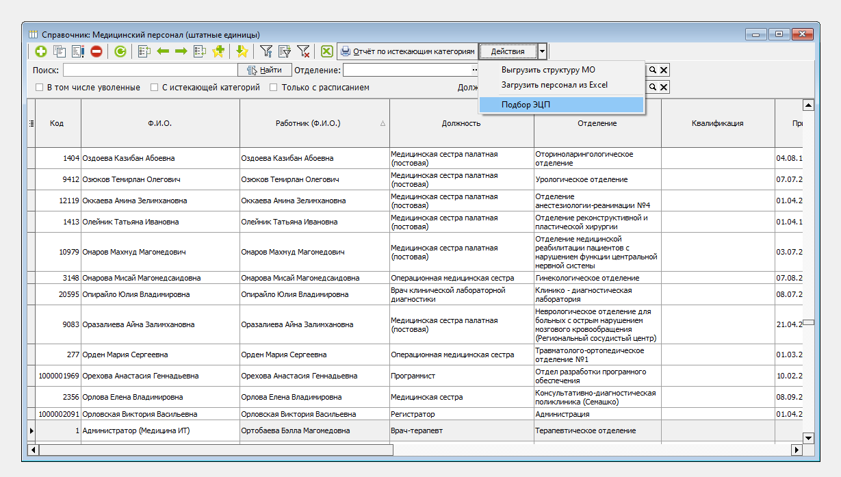 «Квалификация (категория)» – заполняется из справочника квалификаций медицинского персонала.