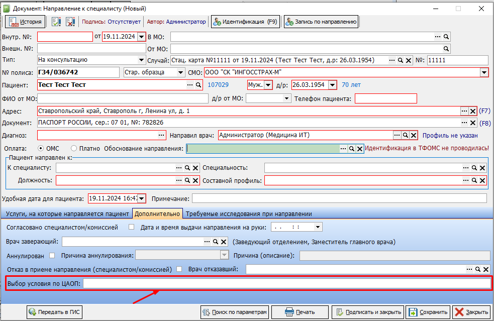 8. "Направил врач" - по умолчанию тянется врач который создает направление, но врача можно указать из справочника вашей МО через меню «...»