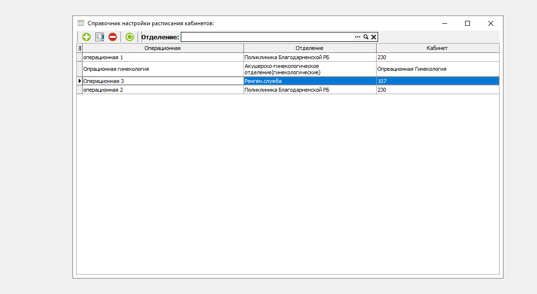Настройка расписания кабинетов для модуля планирования оперативных вмешательств.