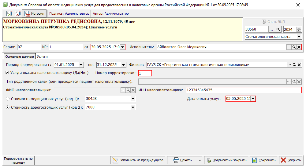 В открывшемся окне справки, необходимо перепроверить и до заполнить данные справки: