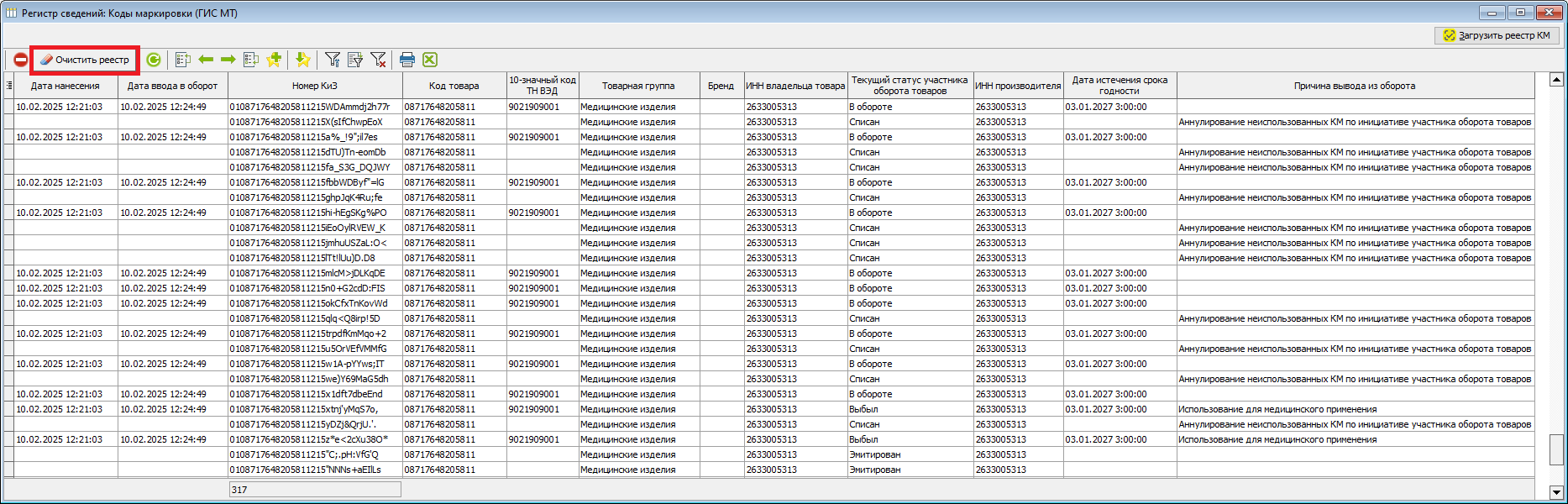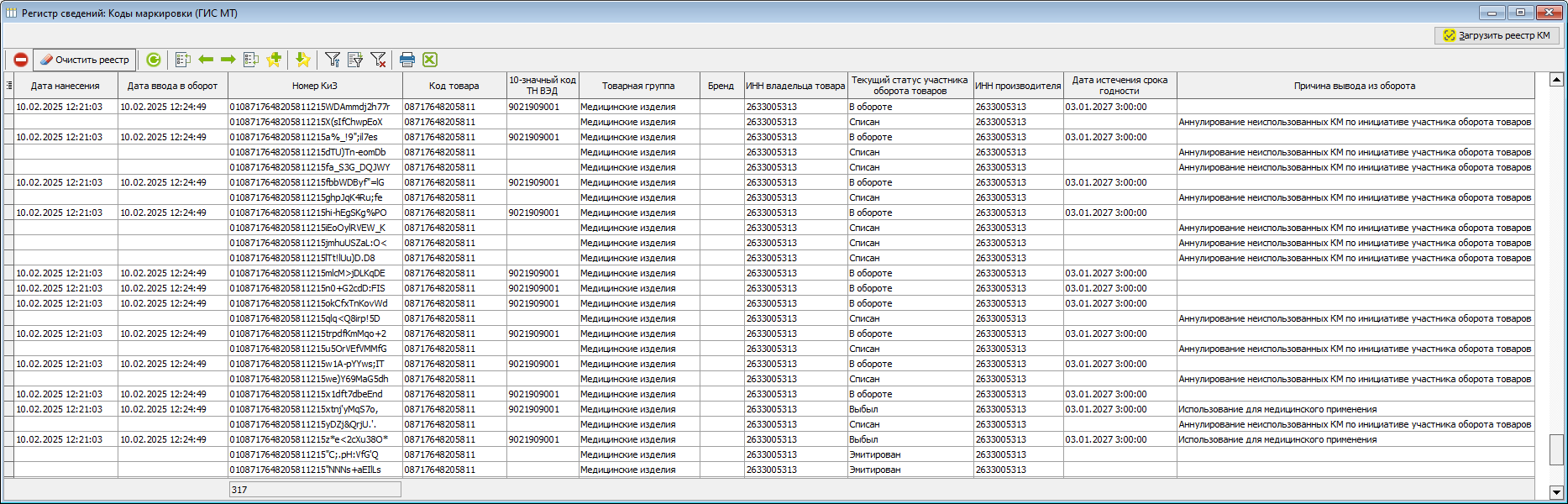 Для загрузки сведений из ГИС МТ необходимо нажать "Загрузить реестр КМ" (рисунок 4).