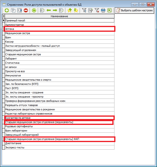 Каждая из этих ролей предназначается для трех участков учета: старшей медицинской сестры (производит списание препаратов в отделении и учет препаратов на складах подразделений); бухгалтера (контролирует работу всех участников склада); работника аптечного склада (отвечает за поступление и передачу препаратов в отделениях) соответственно. Также при необходимости можно создавать собственные роли для более детального разграничения прав доступа к документам и справочникам для необходимого количества участников учета. Создание ролей пользователей может осуществлять как системный администратор ЛПУ, так и служба технической поддержки компании, обслуживающей данный модуль.