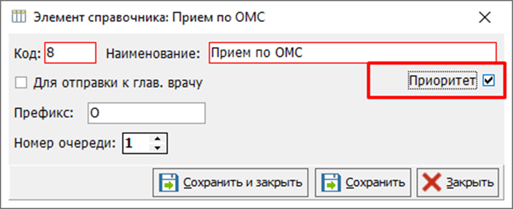 Так же при настройке вида обращения можно поставить настройку «Приоритет» и талоны из этой очереди будут вызывается в регистратуру в первую очередь.