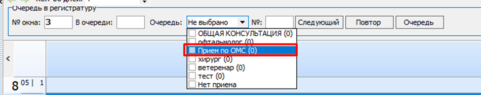 После добавления Вида обращения в регистратуру этот вид очереди отобразится у регистраторов в планировщике записи на прием.