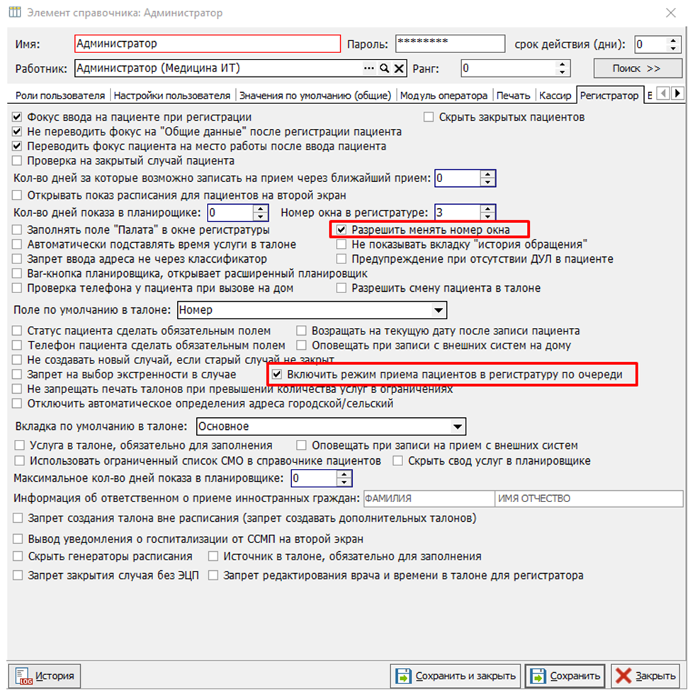 Настройка пользователей для работы с Электронной очередью в регистратуру.