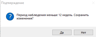 - Не проверять период наблюдения – настройка для отключения оповещений о периоде наблюдения. По умолчанию выходит предупреждение (рисунок 8).