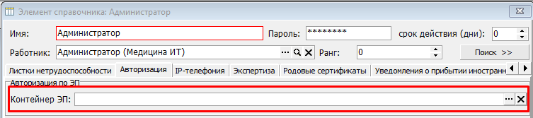 Авторизация по ЭП (Рисунок 2) - позволяет выбрать контейнер с электронной подписью с помощью которого будет проходить вход в программу пользователем.