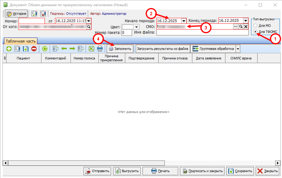 3) Выбрать СМО, по которой будет проходить выгрузка;