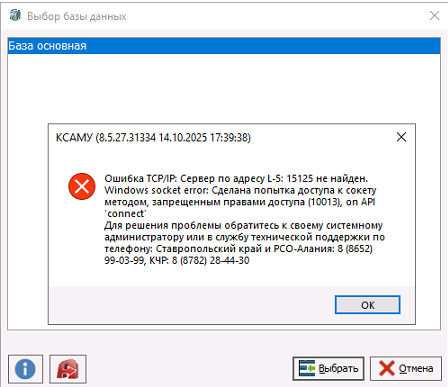 Антивирусное ПО: временно отключить антивирус и проверить подключение. Добавить приложение и папку с БД в исключения антивируса.