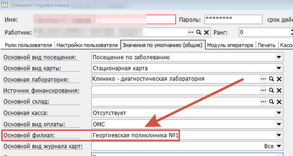 Далее у пользователя в настройках, укажите основной филиал, в котором он работает.