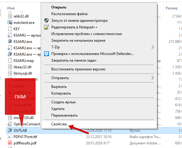 1) В папке MIS_KSAMU создаем ярлык на программу и даем название на латинице, либо цифрами, например "OUTLAB".