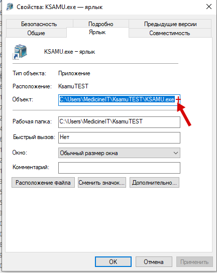 2) В свойствах ярлыка в поле объект дописываем к основному наименованию объекта: