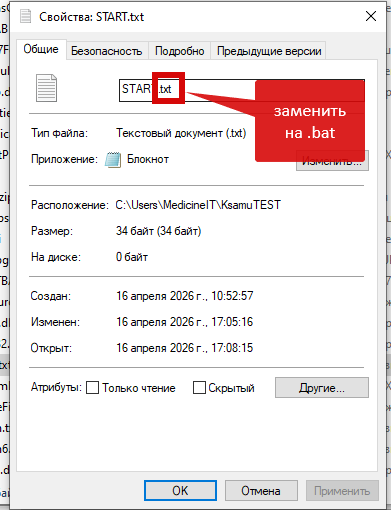 Для это создайте в папке MIS_KSAMU текстовый документ: