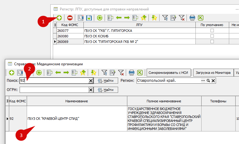 3) Если регистр не используется, а обмен осуществляется, необходимо заново добавить МО в список организаций, доступных для отправки направлений:
