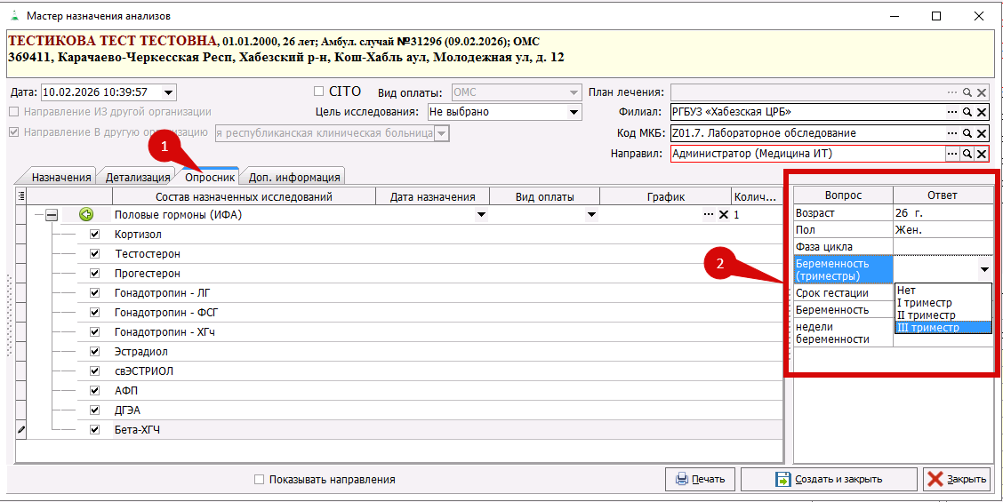 Мастер назначения анализов: