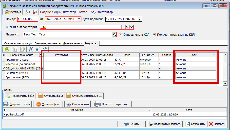 - Результат - после загрузки результата (ссылка) содержатся структурированные данные результата, а также загруженные в ходе обмена файлы, результаты в формате pdf, этикетки, направительные бланки и т.п.
