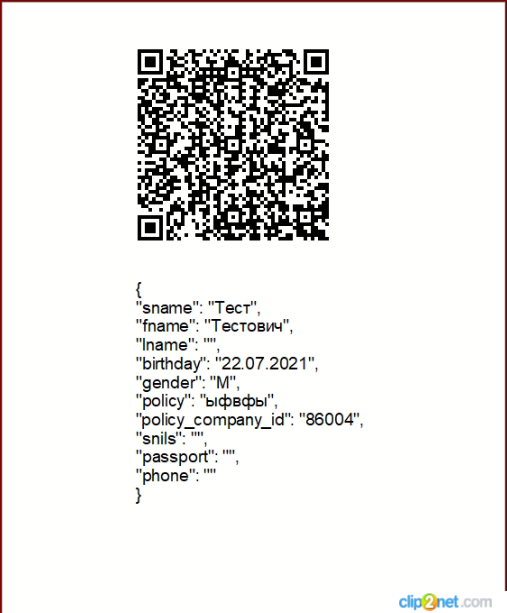 После чего откроется окно с QR-кодом и данными пациента (Рисунок 10)