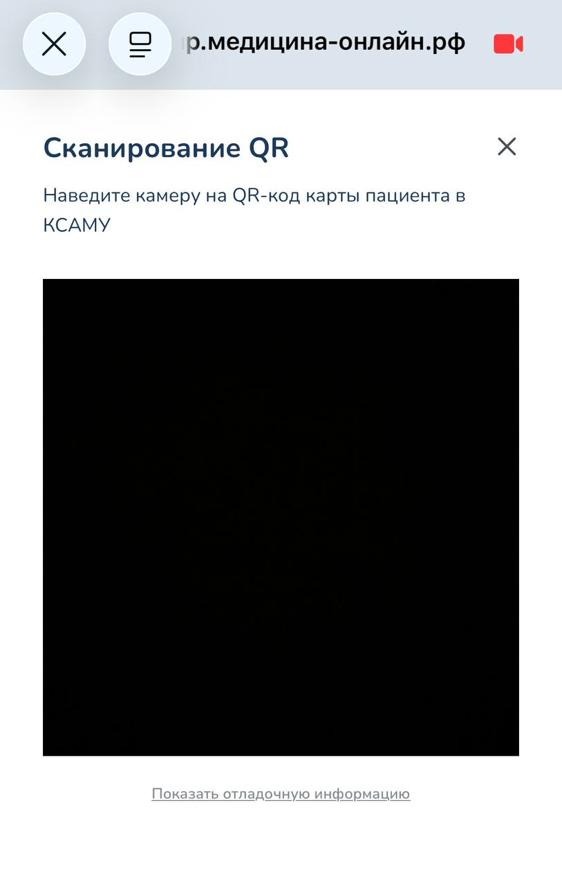 После этого откроется окно с камерой, чтобы отсканировать QR-код карты из КСАМУ (Рисунок 7)
