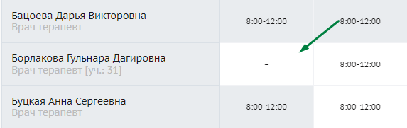 Прочерк в расписании означает, что на данный день сотрудники медицинской организации не предоставляли талонов для записи через портал.