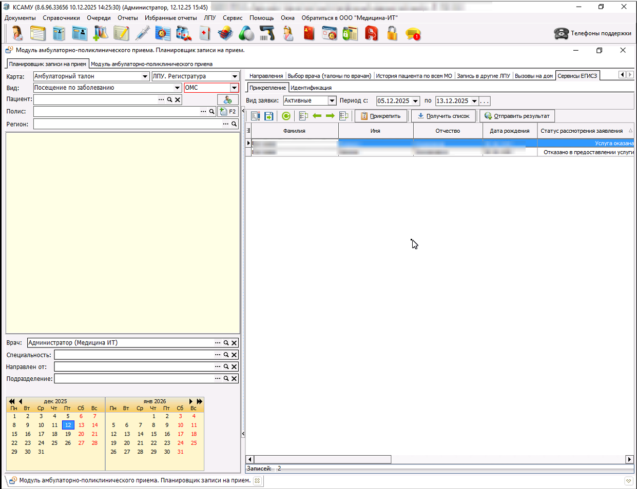 Заявки созданные пациентами на ЕПГУ будут попадать в "Планировщик записи на прием" вкладку "Сервисы ЕГИСЗ" "Прикрепления" (рисунок 2).