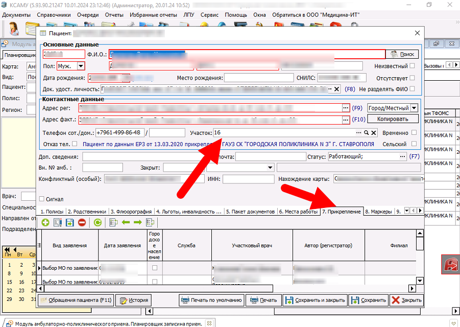 После этого заявки созданные пациентами будут попадать в "Планировщик записи на прием" вкладку "Сервисы ЕГИСЗ" "Прикрепления"