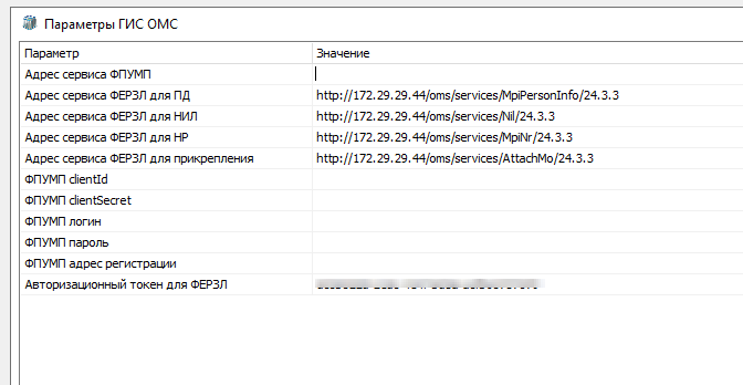 1.1 Настройка параметров работы с ГИС ОМС (ФПУМП, ФЕРЗЛ)