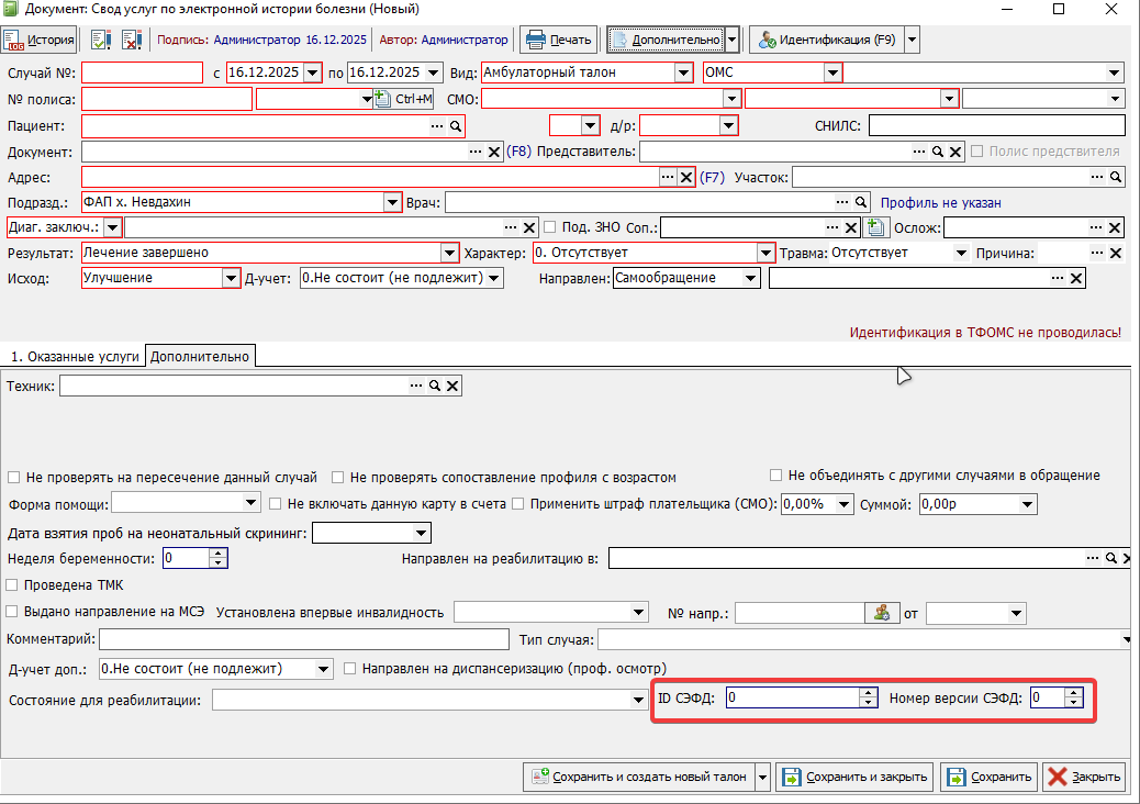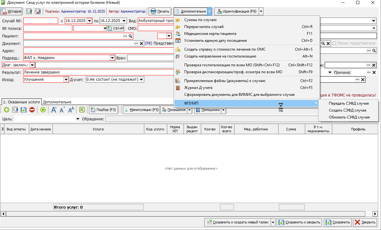 Рисунок 4 – Функция «Обновить СЭФД случая» в документе модуля «Свод услуг по электронной истории болезни»