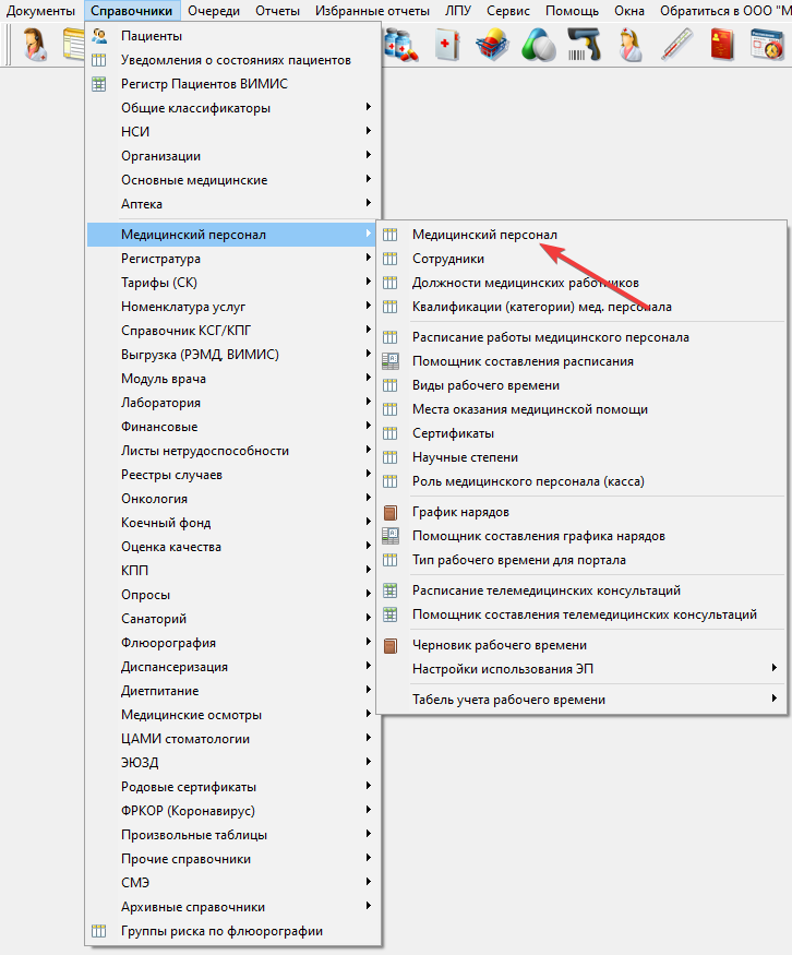 Для этого нужно перейти на вкладку"Справочники - Медицинский персонал - Медицинский персонал" (рисунок 4).