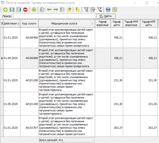 Тарифы для диспансеризации и профосмотров в КСАМУ расположены в меню "Справочники" - "Тарифы (КЧР)" - "Тарифы на медицинские услуги" (рисунок 1, 2).