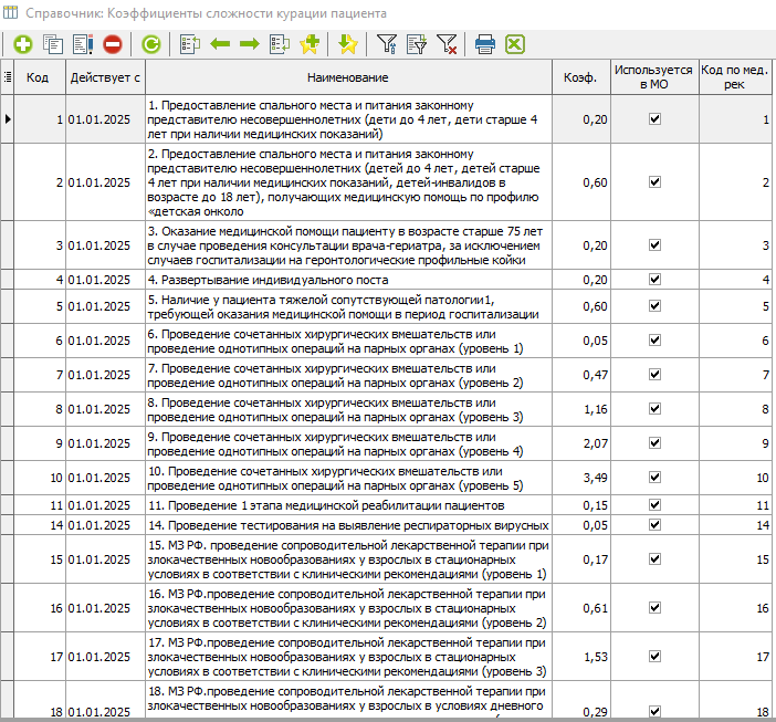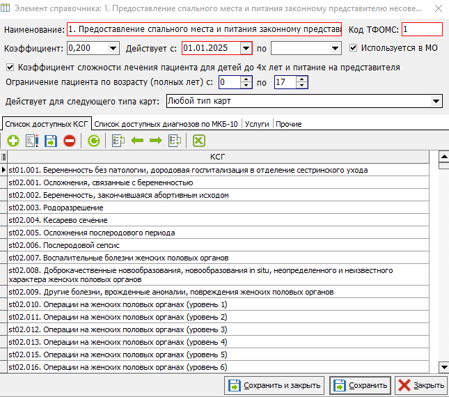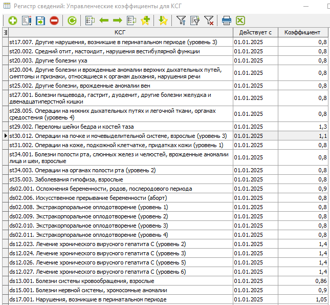 2. Если установлена настройка, что к КСГ, то из формулы расчета стоимости КСГ исключается умножение на коэффициент уровня. Перечень КСГ, к которым не применяется коэффициент уровня находятся в приложении 7.