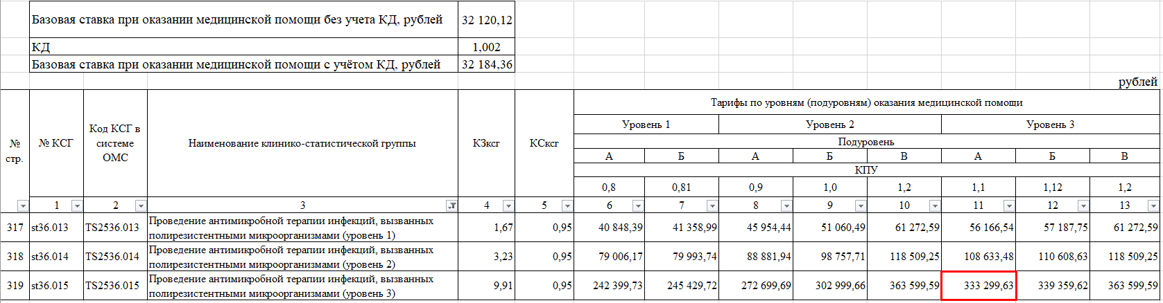 - Услуга с полной стоимостью КСГ в соответствии с коэффициентом уровня. Пример: тариф для МО с коэффициентом уровня 1,1 - 333 299,63 руб. (рисунок 4).