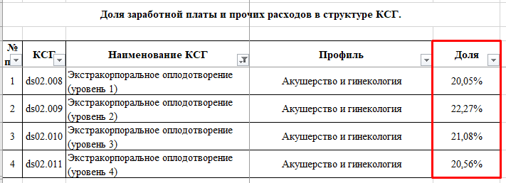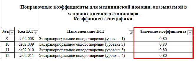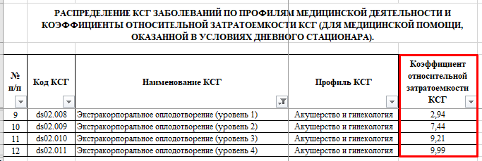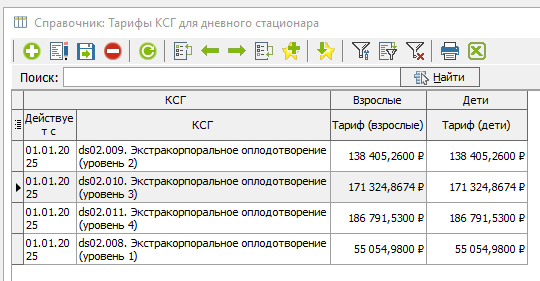 Для примера возьмем КСГ дневного стационара "ds02.010. Экстракорпоральное оплодотворение (уровень 3)" с уже рассчитанной суммой (рисунок 11).