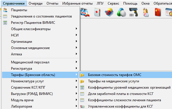 Базовая ставкав КСАМУ находится в пункте меню "Справочники" - "Тарифы (Брянская область)" - "Базовая стоимость тарифов ОМС" (рисунок 8).
