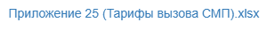 Тарифы на оплату вызова скорой медицинской помощи и скорой медицинской помощи при медицинской эвакуации установлены в приложении 25 к тарифному соглашению (рисунок 1).