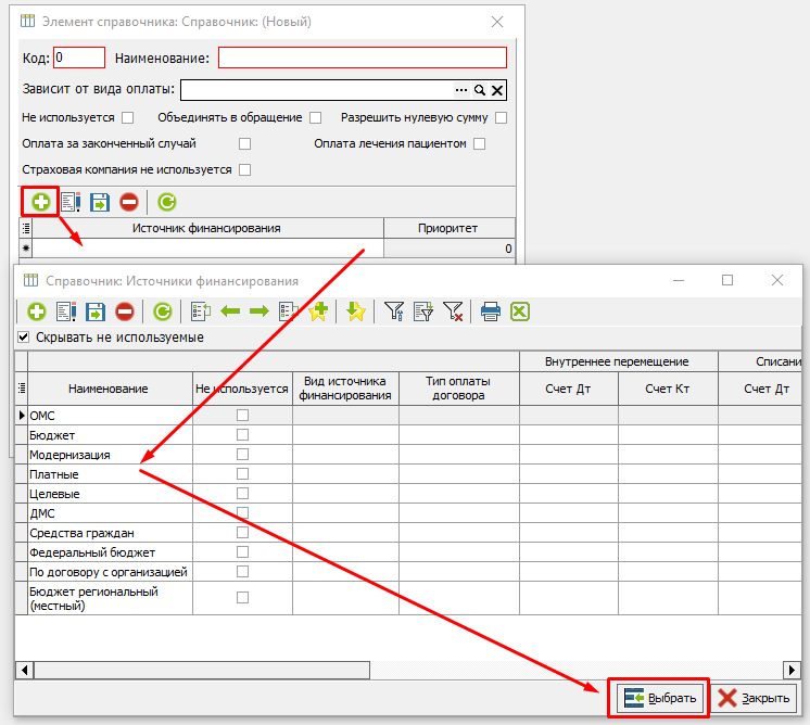 Объединять в обращение. Проставить, если для вида оплаты предполагаются посещения, которые должны будут объединяться в обращения, или вид оплаты зависит от ОМС, в рамках которого предусмотрено объединение посещений.