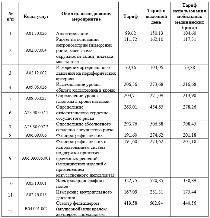 2.1. Диспансеризация взрослого населения (1-ый этап); 2.2. Диспансеризация взрослого населения (2-ой этап); 2.3. Диспансеризация для оценки репродуктивного здоровья (1-ый этап); 2.4. Диспансеризация для оценки репродуктивного здоровья (2-ой этап); 2.5. Проф. осмотры взрослого населения; 2.6. Углубленная диспансеризация взрослого населения (1-ый этап); 2.7. Углубленная диспансеризация взрослого населения (2-ый этап).
