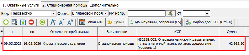 В КСАМУ антимикробная терапия при оформлении карты вносится с помощью подбора дополнительного КСГ. Для этого в стационарных картах есть дополнительная кнопка "Подбор доп. КСГ" или горячая клавиша "Ctrl + K" (рисунок 1).