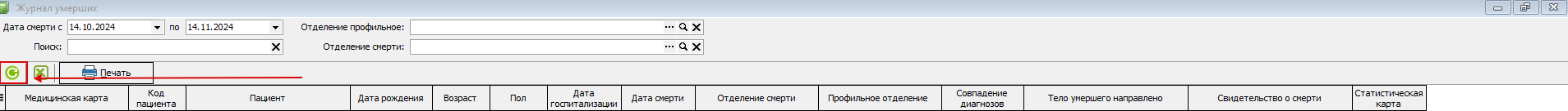 Журнал формируется автоматически на основании наличия в случае протокола "Протокол установления смерти человека" (в протоколе в обязательном порядке указывается регистровое имя "statement_of_death" и ему присваивается значение "1").